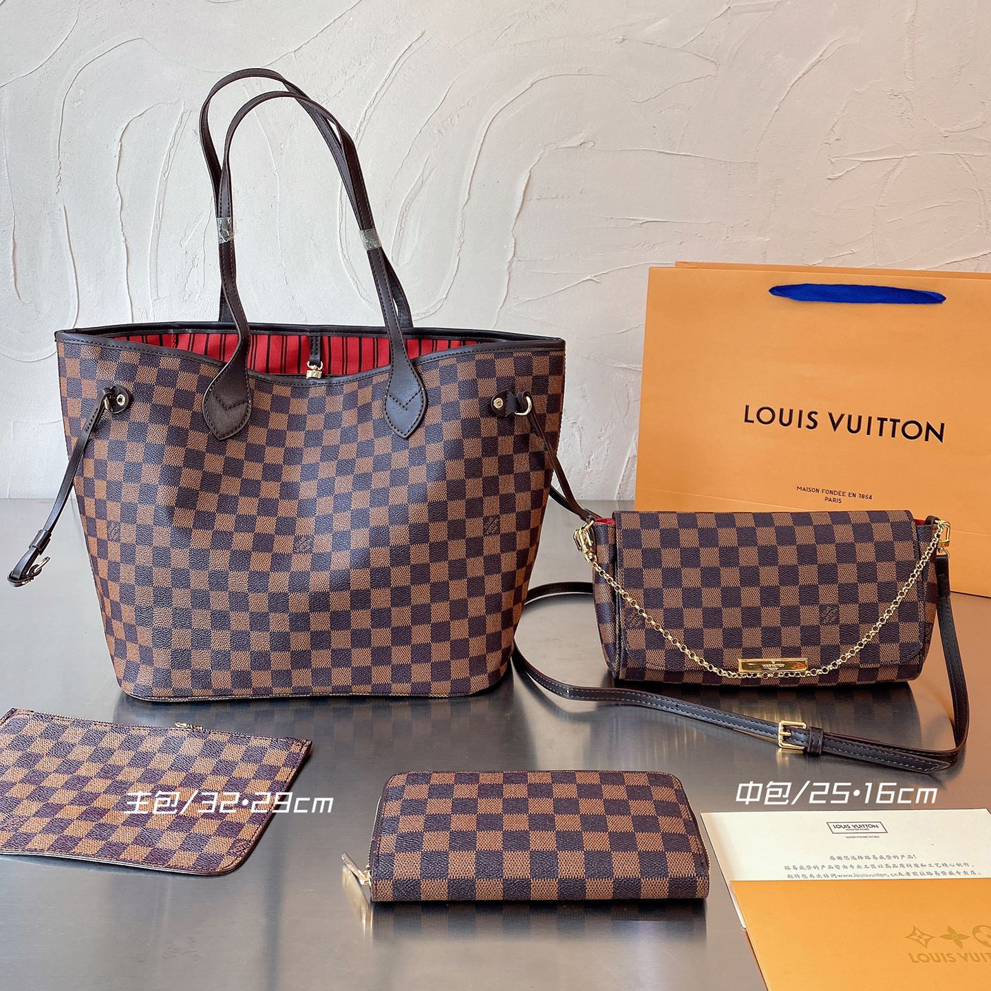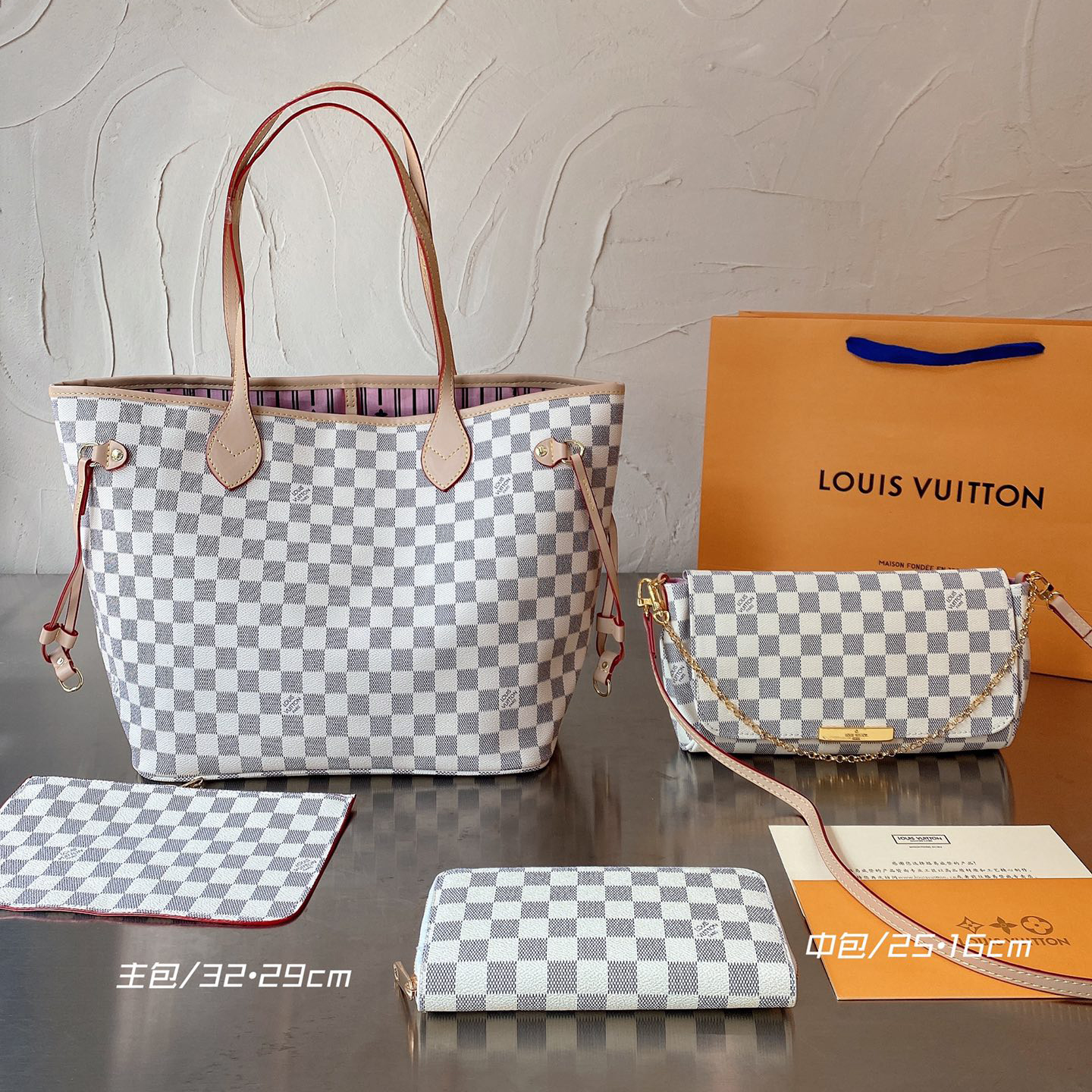 Gucci neverfull totebag three piece set