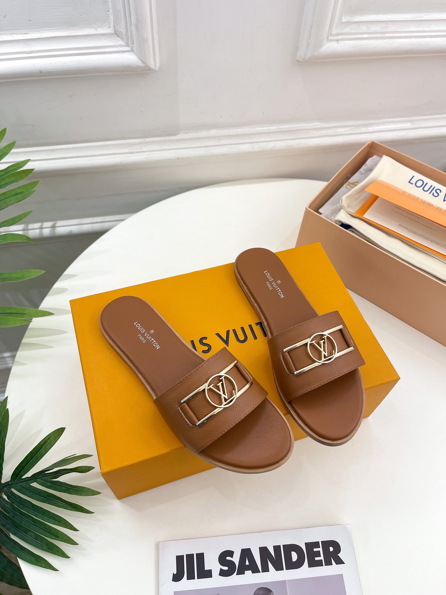 LV new slippers sandles leather sole