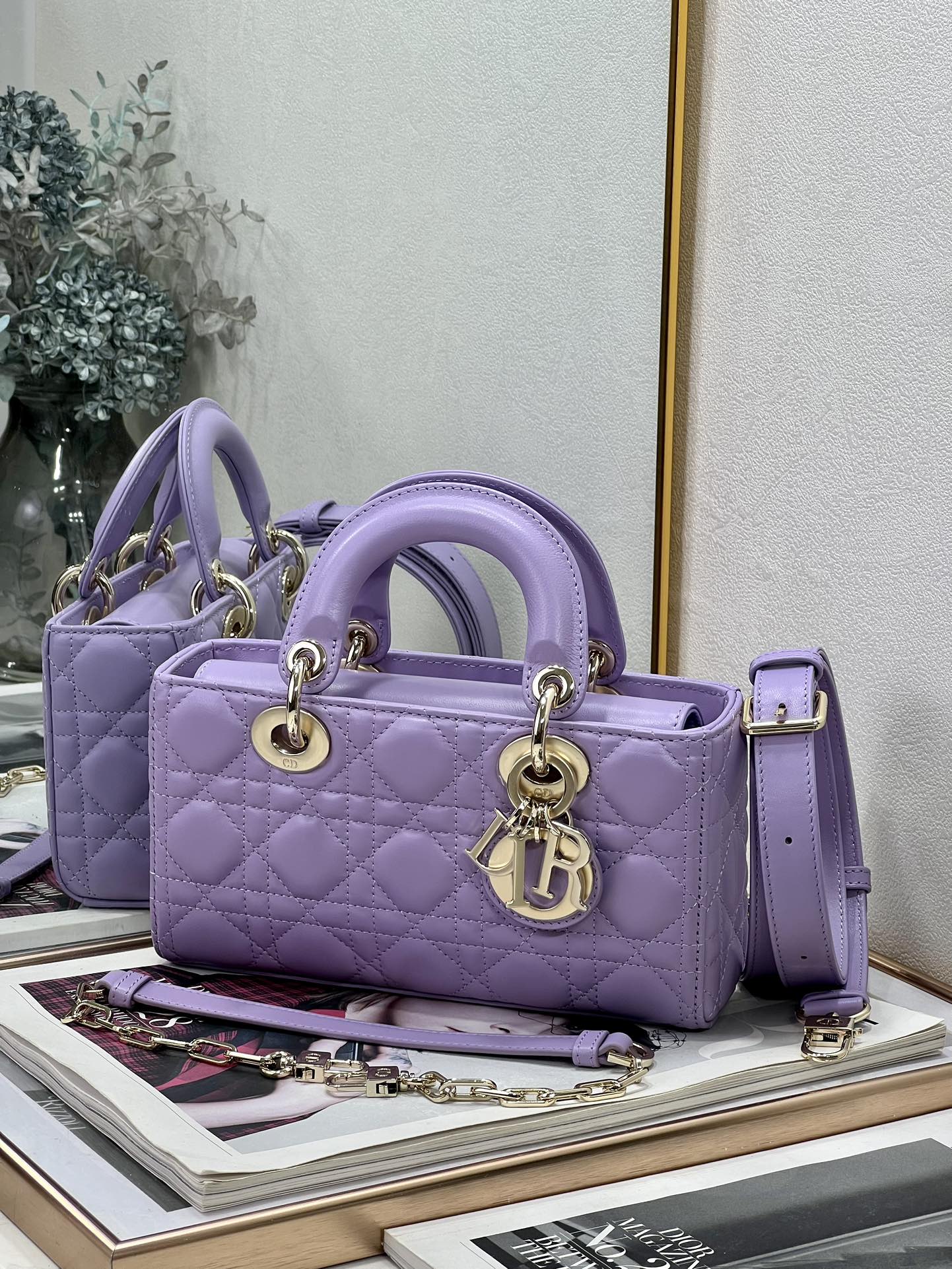 Top version Dior lady Purple sheepskin handbag
