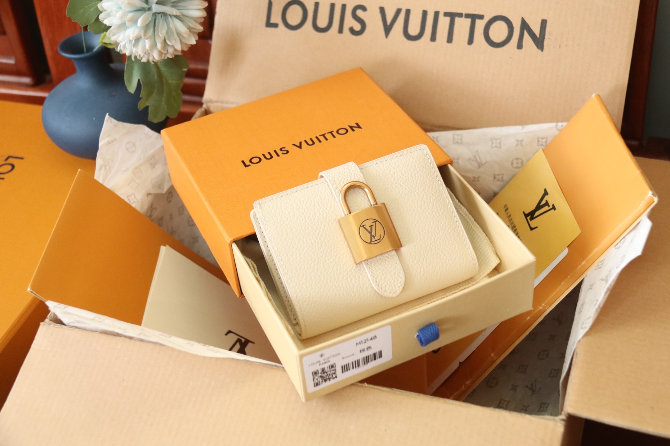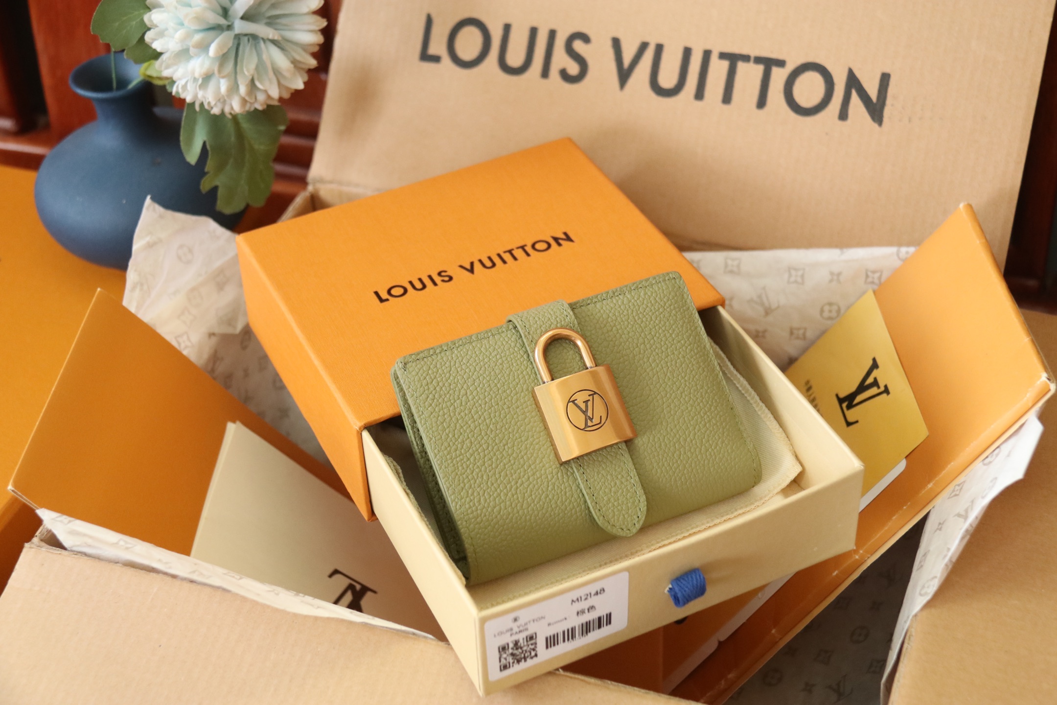 Top version high quality LV Portfoille Locky cowhide bag