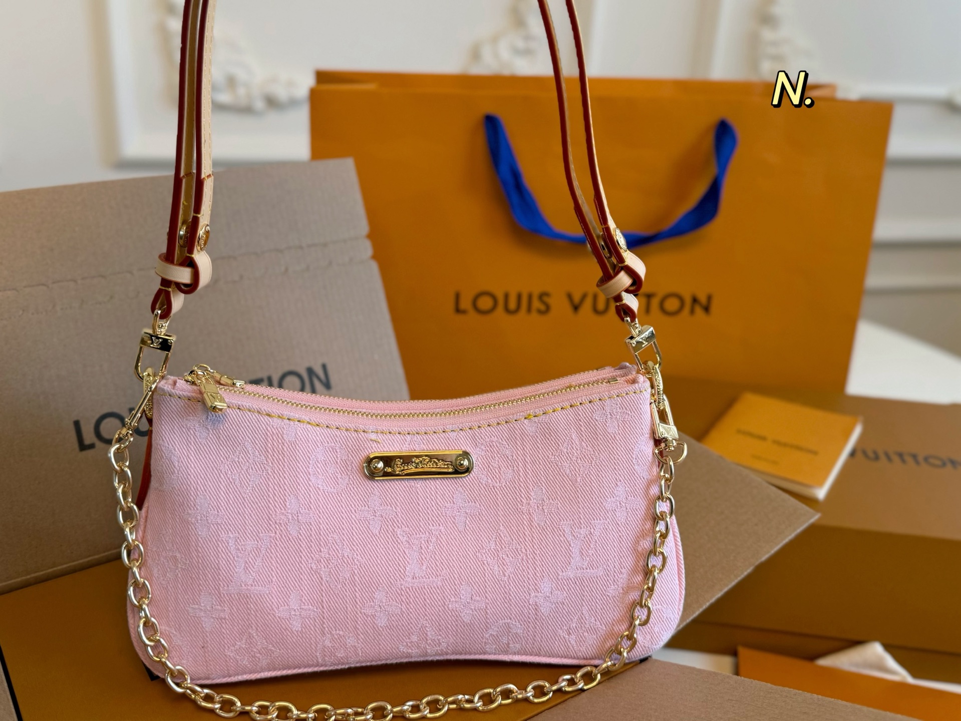 LV denim Liv pochette chain underarm bag