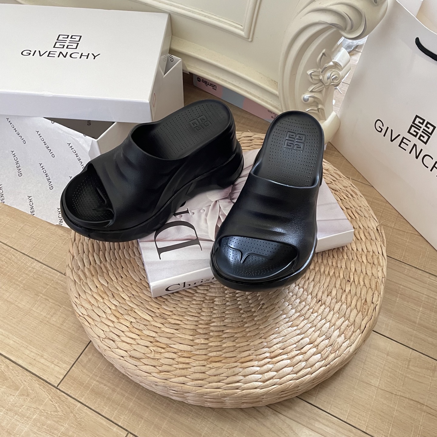 GIVENCHY Marshmallow Slides Thick-Sole Slides Wedge Heel Slides Thick-Sole