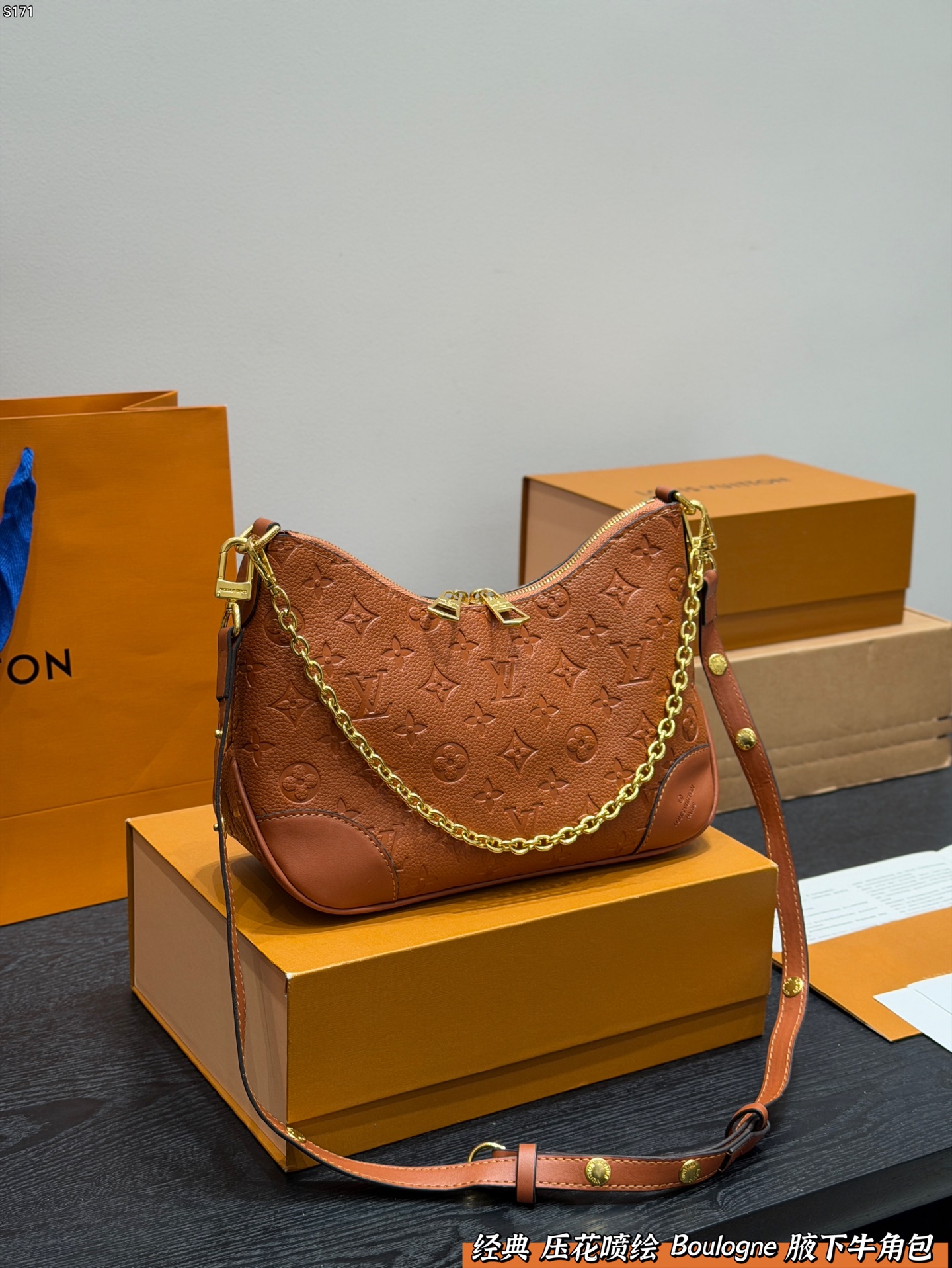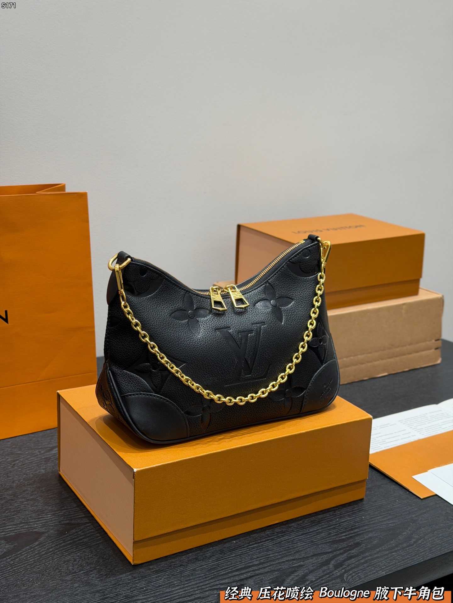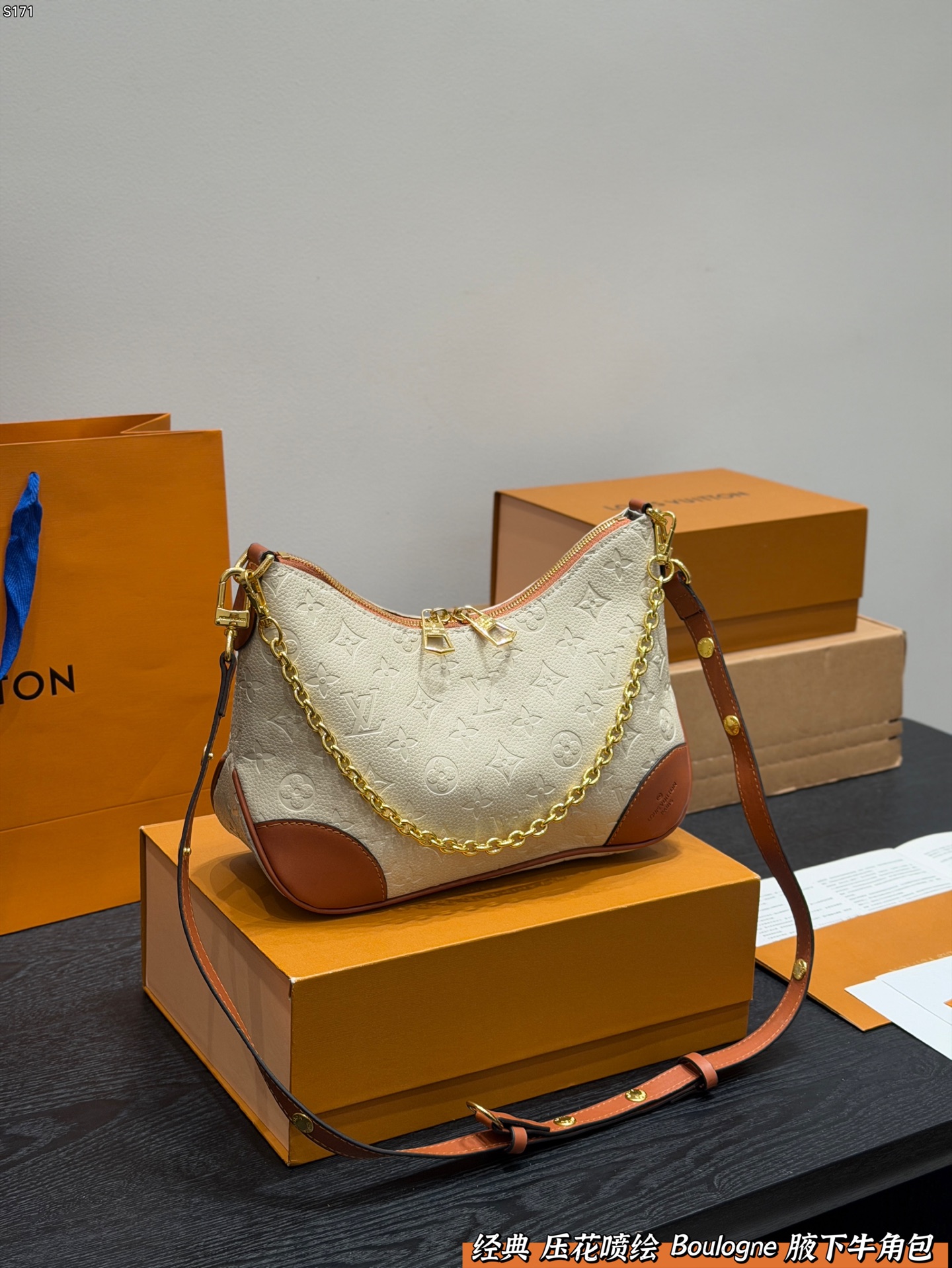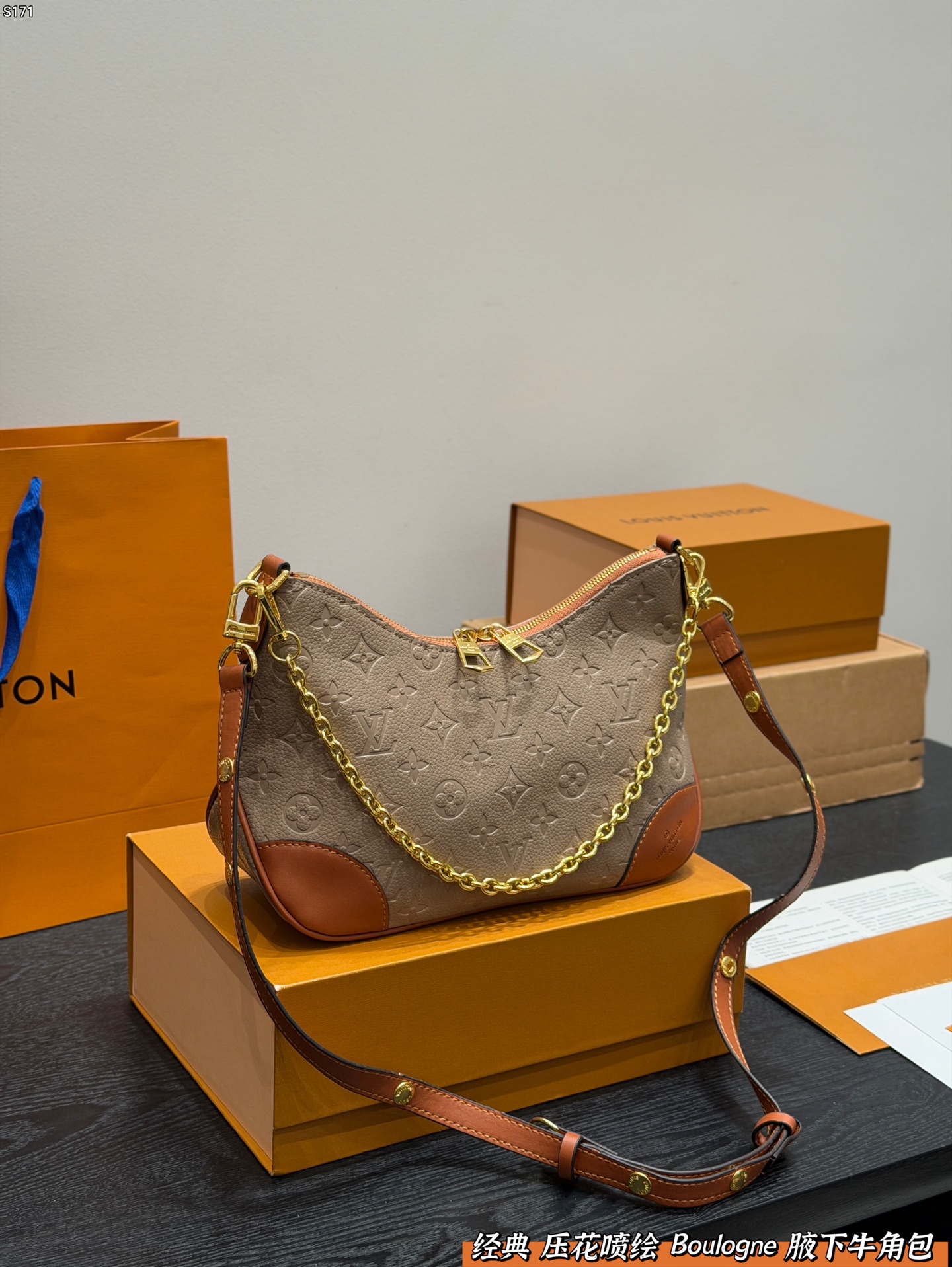 LV embossed and spray-painted Boulogne croissant bag
